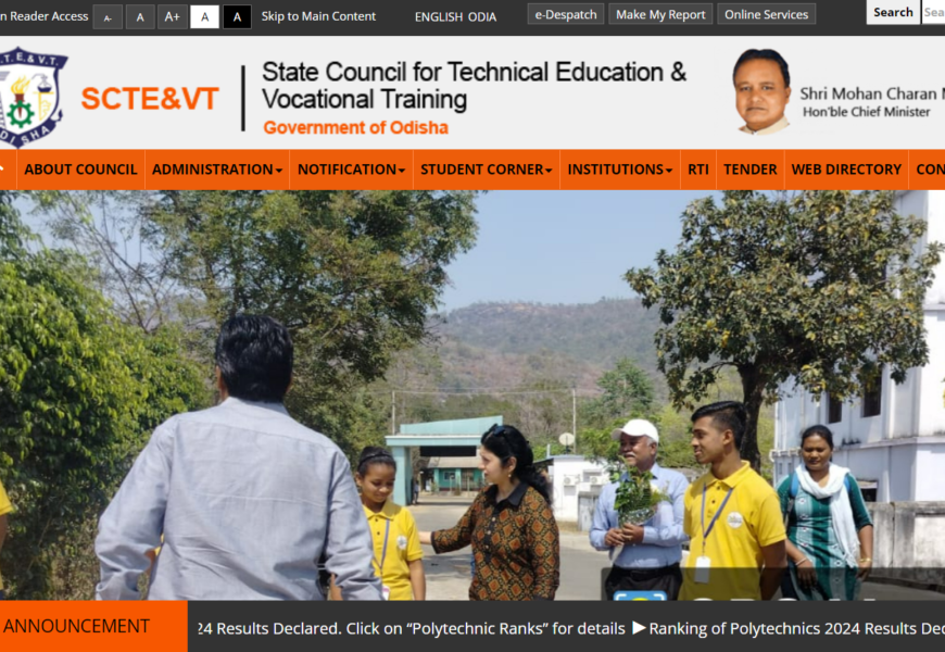 The State Council for Technical Education and Vocational Training (SCTE&VT) council is responsible for overseeing and managing technical education and vocational training in the state.The portal aims to provide a comprehensive resource for students, educators, and institutions involved in technical and vocational education in Odisha.