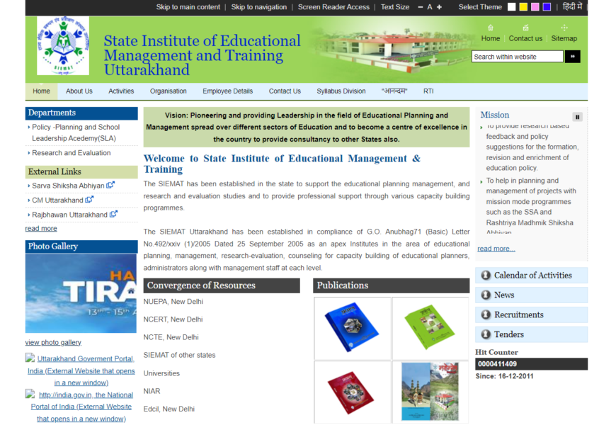 The State Institute of Educational Management and Training (SIEMAT) website (https://siemat.uk.gov.in/) focuses on enhancing educational planning, management, and research in Uttarakhand.