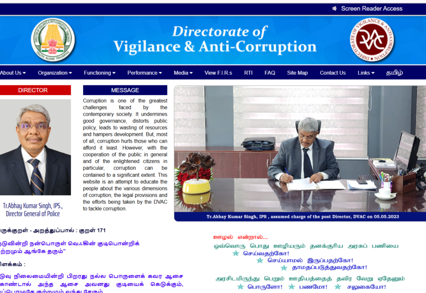 This portal offers resources to report corruption, learn about anti-corruption initiatives, and access transparency measures implemented by the Tamil Nadu government.