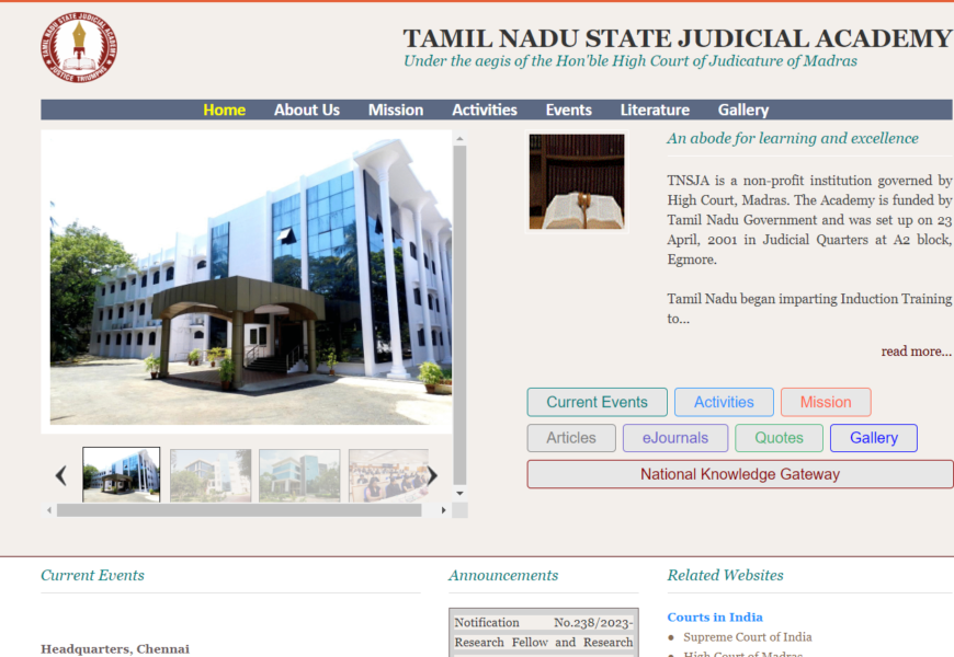 he website tnsja.tn.gov.in is the official portal for the Tamil Nadu State Judicial Academy (TNSJA). The TNSJA is an institution established to provide training and education to judicial officers, legal professionals, and other stakeholders in the judicial system of Tamil Nadu. Here’s a detailed overview of what you can expect to find on this website: