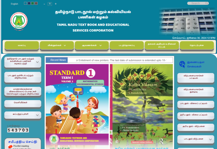The website textbookcorp.tn.gov.in is the official portal for the Tamil Nadu Textbook and Educational Services Corporation (TNTBESC). The corporation is responsible for publishing and distributing textbooks and educational materials for students in Tamil Nadu. Here’s an overview of what you can typically find on this website: