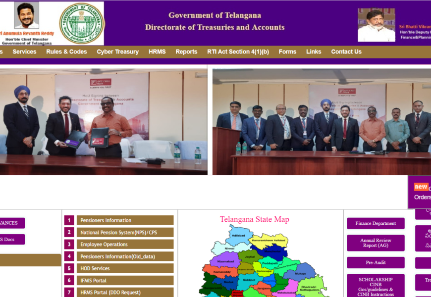 Purpose: The official website (https://treasury.telangana.gov.in/) for the Treasury Department of Telangana, which deals with financial management for the state.