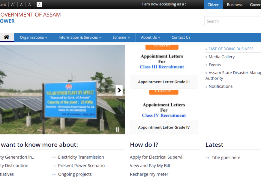 Overall, the website appears to be a comprehensive platform for providing information, services, and resources related to the power sector in Assam, with a focus on improving the power infrastructure, promoting renewable energy, and enhancing consumer experience.