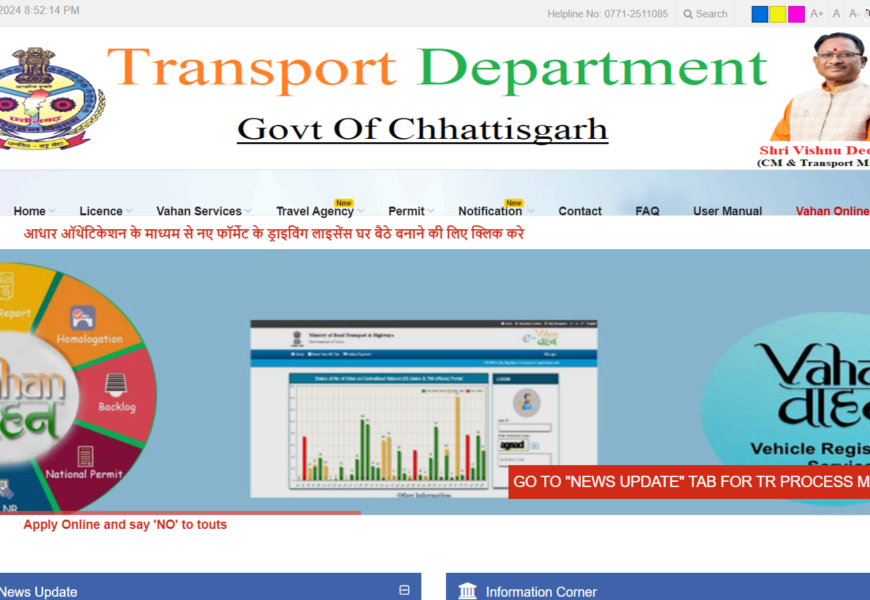 The website https://cgtransport.gov.in/ is the official website of the Transport Department of Chhattisgarh. It provides various online services and information related to transportation within the state. This typically includes details on vehicle registration, driving licenses, permits, road safety measures, and transport policies specific to Chhattisgarh. Users can access forms, check status of applications, find contact information, and get updates on transport-related news and initiatives through this website. For specific services or detailed information, visiting the website directly would be most helpful.