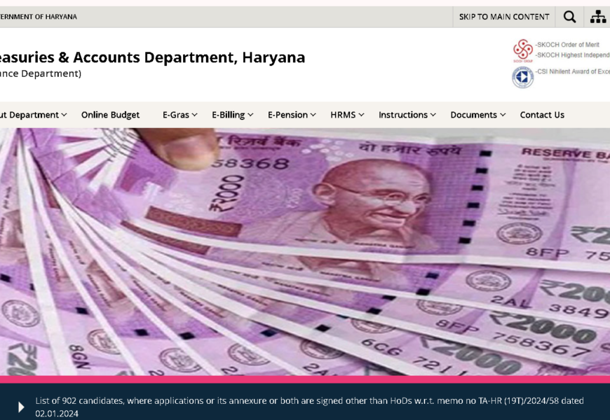 The website hrtreasuries.gov.in is the official portal for the Treasuries and Accounts Department of Haryana, India. It provides information and services related to financial management and treasury operations in the state. Here are some key features typically found on such a site:
