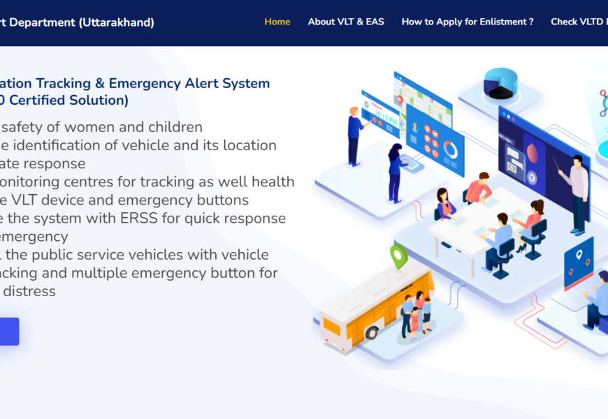 The Vehicle Location Tracking (VLT) & Emergency Alert System (EAS) website (https://vlt.uk.gov.in/) is a platform by the Uttarakhand Transport Department, designed to enhance vehicle safety and monitoring. It supports the installation and management of VLT devices and emergency alert buttons in public vehicles for real-time tracking and response.