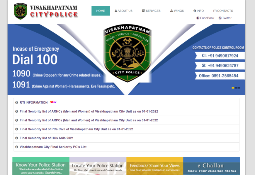 The Visakhapatnam City Police website serves as the primary digital platform for providing information and services related to law enforcement in Visakhapatnam (Vizag). It is designed to facilitate communication between the public and the police force, while promoting transparency, accountability, and improved law enforcement services.