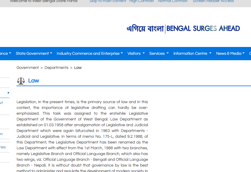 The link you provided directs to a page on the West Bengal government’s official website that pertains to the Law Department. This department is responsible for the administration of justice and the legal framework in the state of West Bengal.